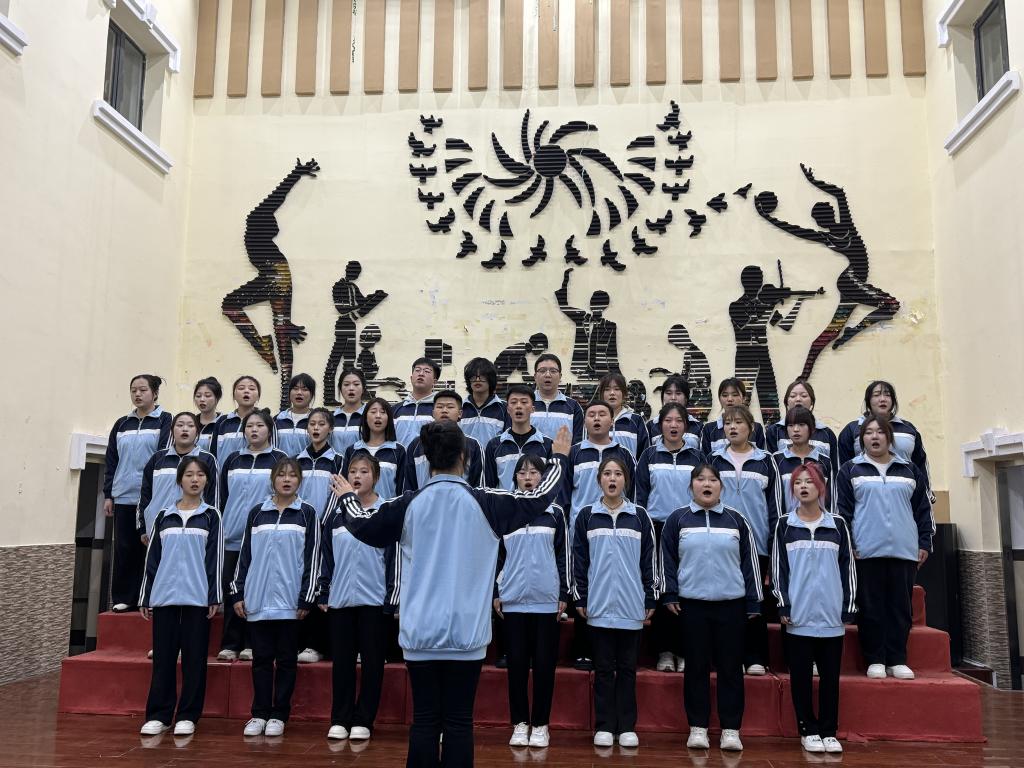 在众多参赛作品中,既有经典的红色歌曲,如《国家》《爱我中华》等,参赛队伍们用嘹亮的歌声重温了革命岁月,传承了红色精神,让现场观众感受到了那段波澜壮阔历史中蕴含的伟大力量;也有充满青春活力的流行歌曲,如《少年中国说》《不忘初心》等,他们以独特的编排和充满朝气的演唱,展现出当代学生的青春风采和对美好生活的向往。每支队伍都在舞台上尽情释放着自己的才华,用歌声诠释着团队的凝聚力和对音乐的热爱。除了精彩的演唱,各队伍在舞台表现上也下足了功夫。有的队伍加入了创意十足的舞蹈动作,为合唱增添了更多的视觉看点;有的队伍则巧妙地运用了乐器伴奏,丰富了歌曲的层次感。舞台上,指挥家们精准的手势和投入的表情,引导着队员们将每一个音符完美呈现;队员们默契配合,眼神交汇间传递着信任与鼓励。